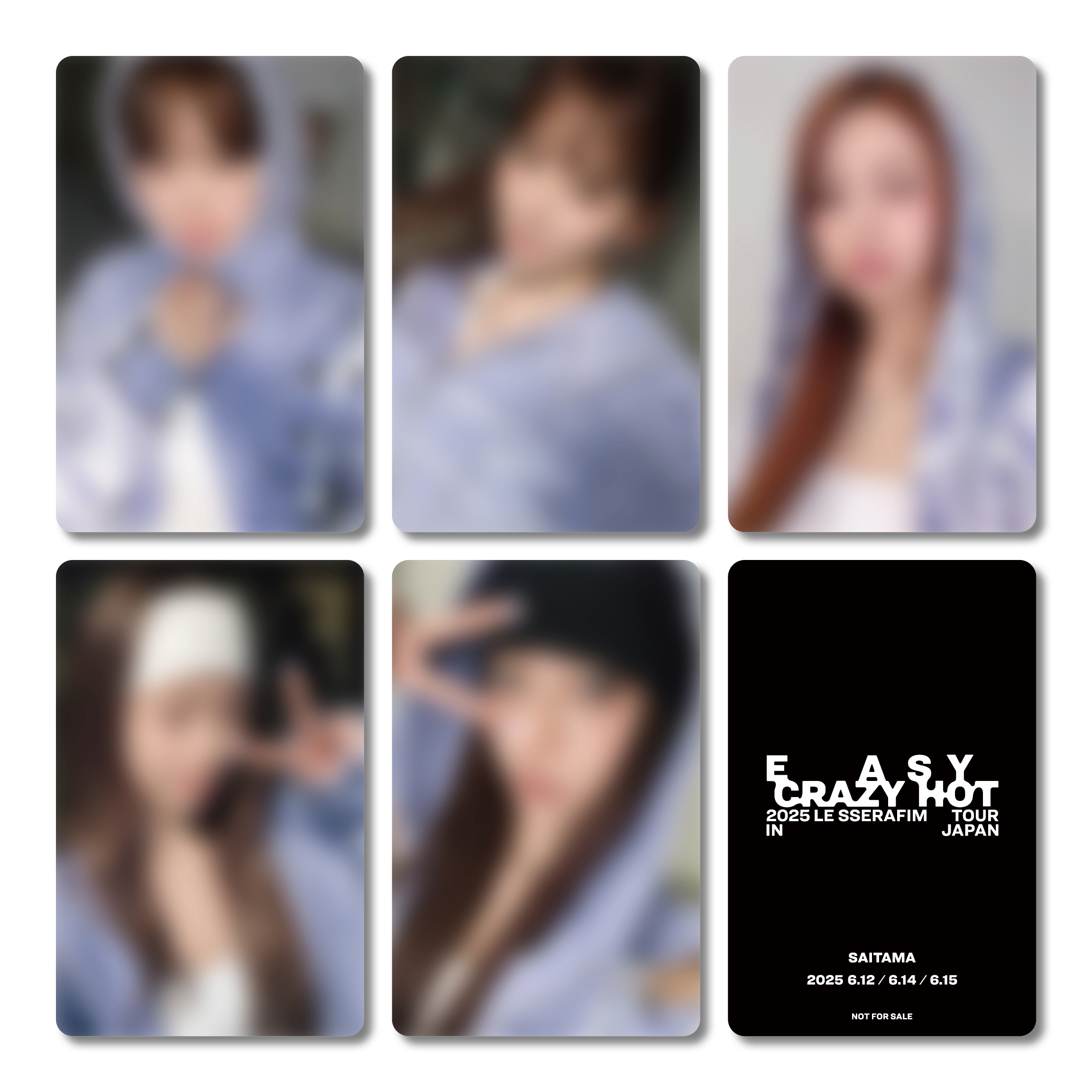 会場入場時に配布されるチラシに記載の2次元コードから特別販売サイトにアクセスいただき、対象商品1点をご予約いただきますと、『2025 LE SSERAFIM TOUR ‘EASY CRAZY HOT’ IN JAPAN』来場者限定絵柄のフォトカード(店舗ごとに1種×5種メンバー別)をランダムで1枚プレゼントいたします!