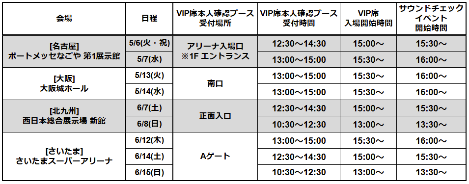 【VIP席サウンドチェックイベントスケジュール・内容】